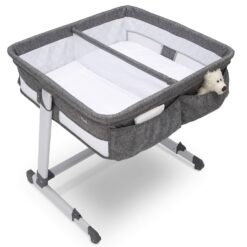 Simmons Kids By The Bed City Sleeper Bassinet for Twins – Adjustable Height Portable Crib with Wheels & Airflow Mesh, Grey Tweed
