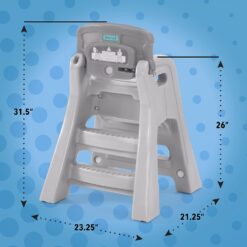 The Big Kid Booster Chair features easy-grip hand holds, sure-tread entry/exit steps on the front and back, a wide, stable base, flip-up seat back, and parental seat-lock for security.