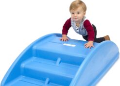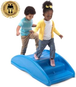 Simplay3 Two Sided Rock and Roll Teeter Totter Seesaw and Climbing Bridge, Fits up to Four Children and Kids for Rocking and Climbing – Indoor/Outdoor – Blue, Made in USA