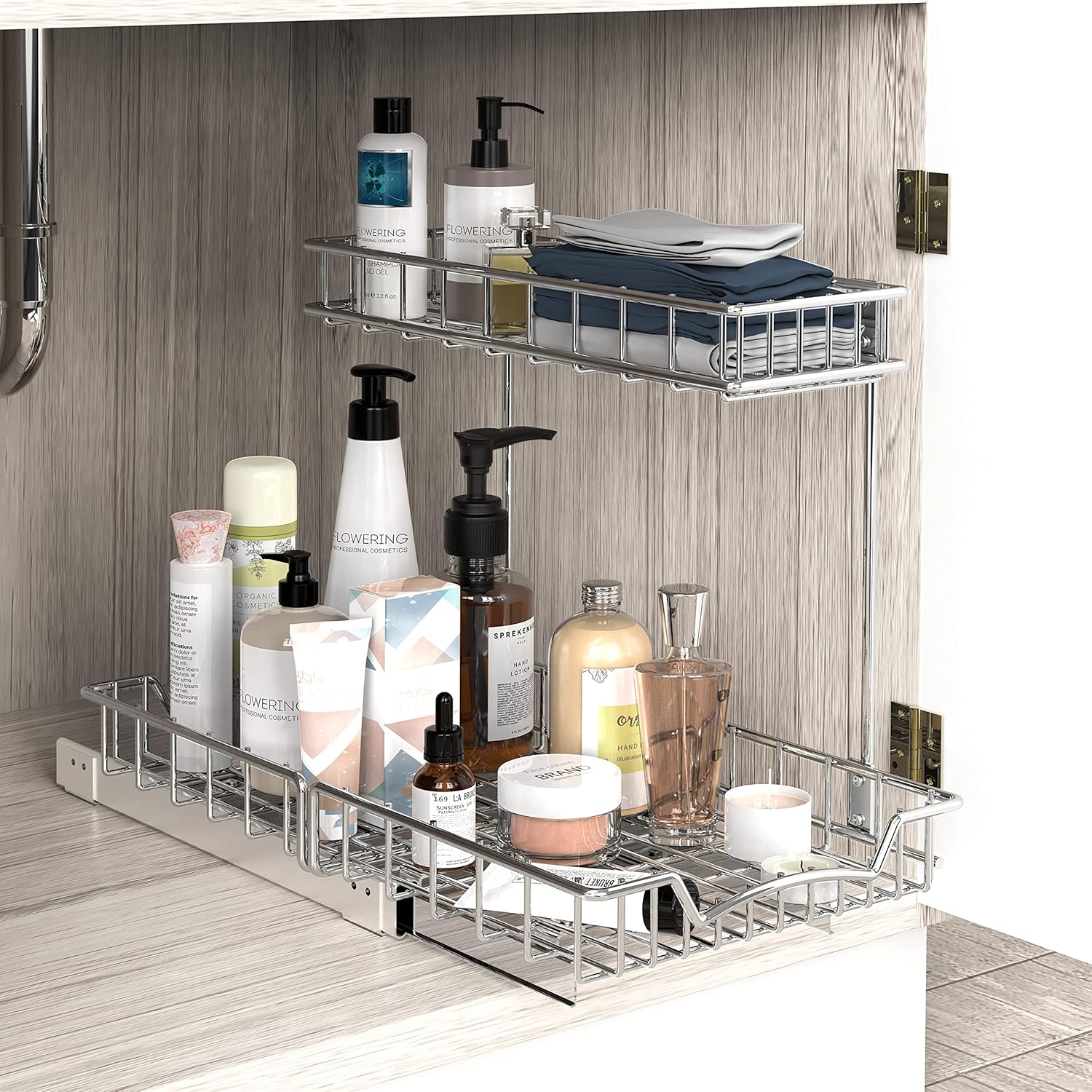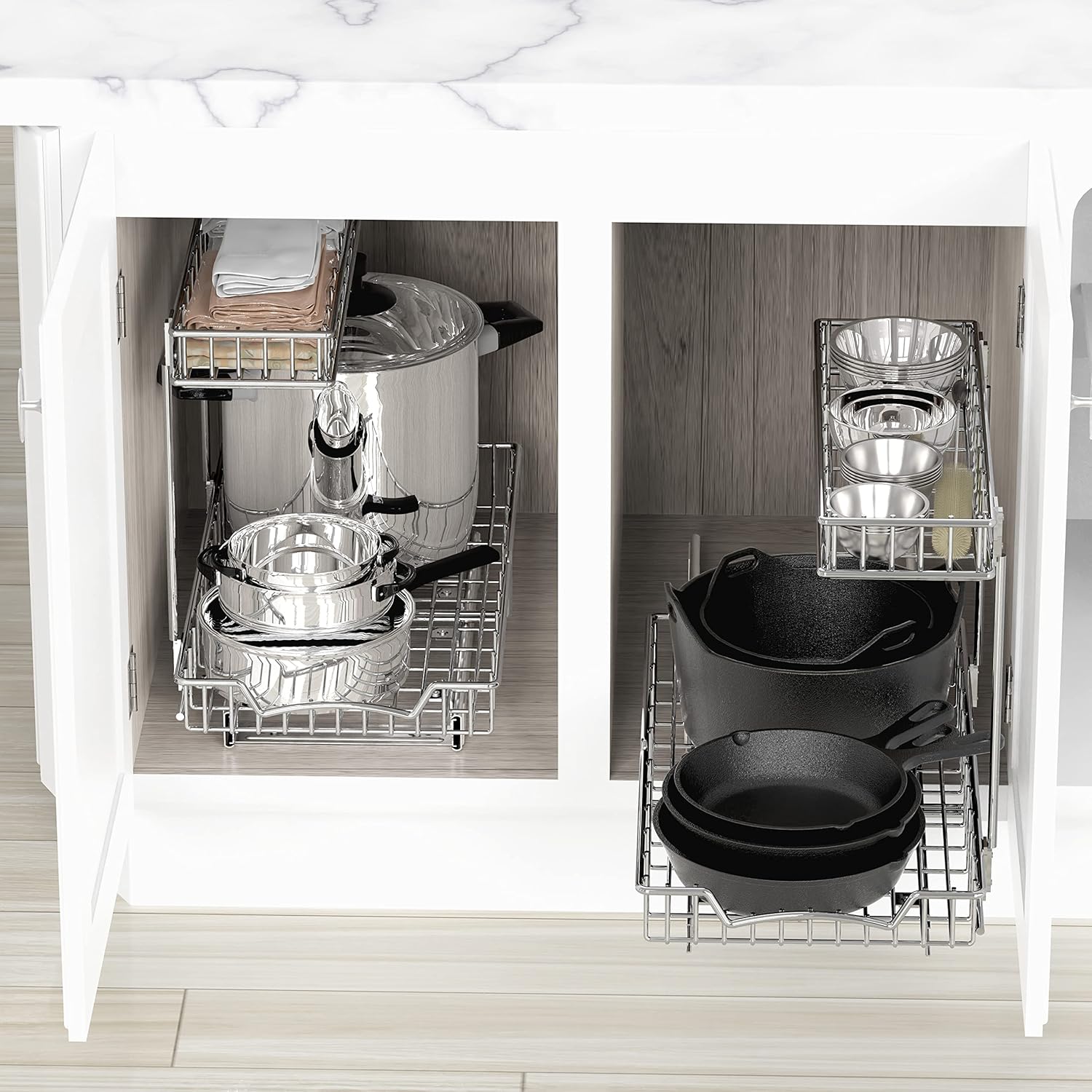 - Slide out basket easily to reach the stuff inside the cabinet.
