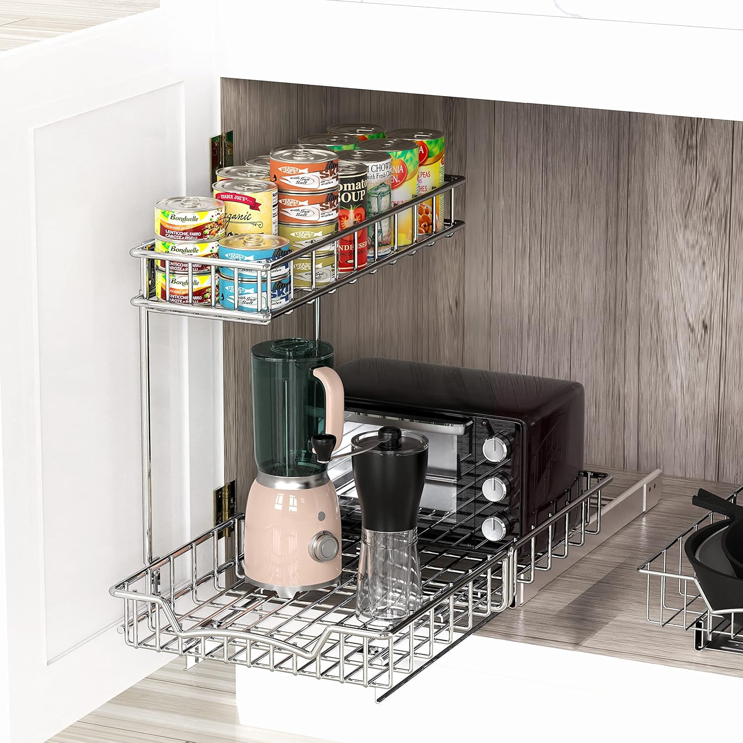 Simple Houseware 2-Tier (L+M) Organizer Pull Out Under Cabinet Sliding Shelf, Chrome