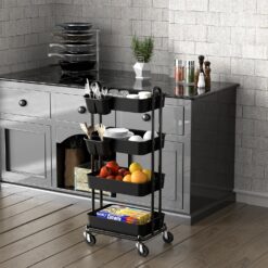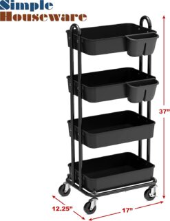 Simple Houseware 4-Tier Multifunctional Rolling Utility Cart with Hanging Buckets, Black