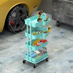 Simple Houseware 4-Tier Multifunctional Rolling Utility Cart with Hanging Buckets, Turquoise