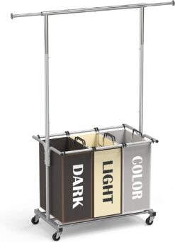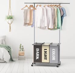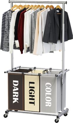 Simple Houseware Garment Rack with 3 Bag Laundry Sorter, Multi Color