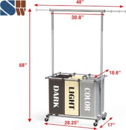 - 3 Bags laundry sorter with hanging bar.