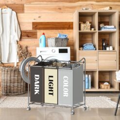 Simple Houseware Heavy Duty 3-Bag Laundry Sorter Rolling Cart, Silver/Assorted