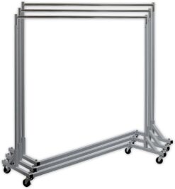 The Z Base shape of the frame allows for stacking multiple racks beside each other. Condense and save as much space as you can while not in use. Wheels/casters included for easy transportation and mobility.