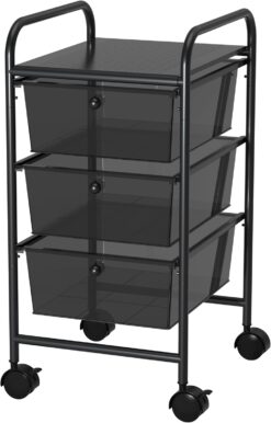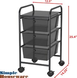 Simple Houseware Utility Cart with 3 Drawers Rolling Storage Art Craft Organizer on Wheels, Black