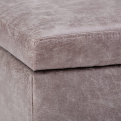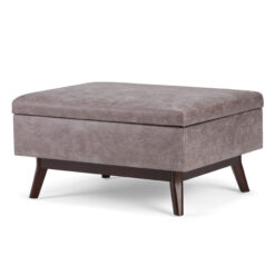 Simpli Home Owen Faux Leather Storage Coffee Table Ottoman in Gray Taupe