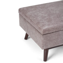 Update your space with the Owen Mid Century Storage Ottoman. Its modern style will add a fresh on trend look to your home. It features a lift up lid and a large interior storage space. Made with solid wood and premium fabrics for stylish durability and comfort. Whether used in the living room, family room or den, it will be the showpiece that completes the room.