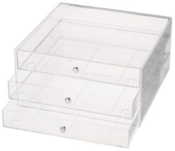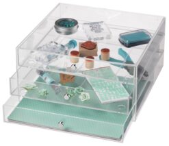 Store your craft supplies in this organizer. You can also use it to hold ornaments, toiletries, cosmetics and more. It features three drawers for more storage capacity.