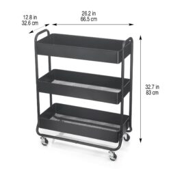 This storage cart is the perfect solution to neatly organize office supplies, household items, craft supplies and more. Featuring three shelves with metal mesh, this cart has a chic appeal that will look great in any room. With four wheels, this rolling cart can be easily moved from room to room.Click here for assembly instructions.