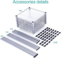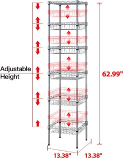 SINGAYE Storage Shelves, 6-Tier Wire Shelving Unit with Baskets Storage Rack Corner Shelf Shelving Adjustable Storage Shelf, Medium, 13.4″ D x 13.4″ W x 62.99″ H,Silver