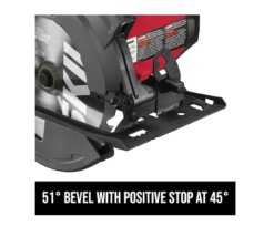 The motor delivers 5,300-RPM for greater speed, while the 51° bevel with positive stop at 45° allows for a range of angled cuts with the durable carbide-tipped blade.