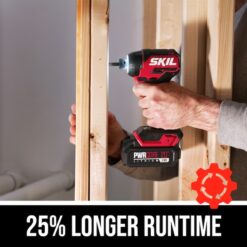 Tackle a variety of projects from light to heavy-duty jobs with the compact cordless power in the SKIL PWR CORE 20™ Brushless 20V Compact Drill Driver and Impact Driver Kit. Both the cordless impact driver and cordless drill driver pack big power into compact designs ideal for working overhead or in hard-to-reach areas. Loosen large bolts, drive screws through thick surfaces, and take on the toughest materials with the impact driver’s 1,800 inch-pounds of torque. Enjoy precise control with the drill driver’s variable speed trigger and change bits quickly and easily with its 1/2-inch single-sleeve keyless ratcheting chuck. This cordless electric power tool combo kit includes the 20V compact drill driver, cordless 20V compact impact driver, a PWR CORE 12™ 2.0Ah lithium-ion battery with PWR ASSIST™ mobile charging, a PWR JUMP™ charger, two PH2 bits, two belt clips, and a battery jacket.