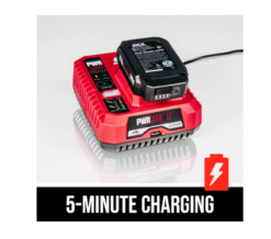 - 5-MINUTE CHARGING – PWR JUMP™ charges the battery in just 5 minutes, or 100% battery in 30 minutes (based on 2.0Ah battery)