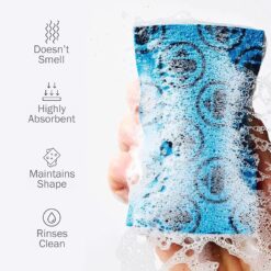 Skura Style Sponge Set – Modern, Odor-Free Cleaning Sponges with Non-Abrasive, Polyurethane foam and a special agent inhibit gross stuff that creates odors. To help you know what’s up, we’ve added a fading monogram.