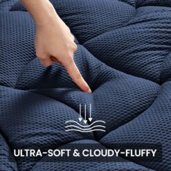 - ULTRA SOFT FLUFFY – We use 120gsm thick brushed microfiber as the sleep surface. Overfilled with 12oz 5D spiral fiber, thicker than most on the market. The fiberfill maintains excellent softness and resilience, making this mattress pad super fluffy. Let you enjoy the luxury hotel level of comfort at home.