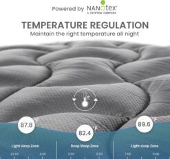 - COOLING BREATHABLE – Mattress pad with new NANOTEX Coolest Comfort Technology features moisture-wicking and fast-drying to actually balance your body temperature throughout the night. The sleep surface is treated with an embossed process, which is usually applied to sports fabrics, making it more breathable and stylish than ordinary material and bringing an advanced dynamic vibe to your bedroom.