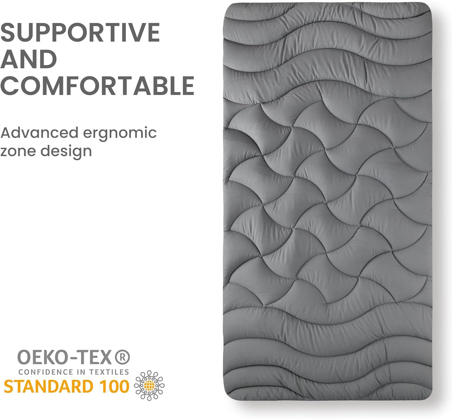 SLEEP ZONE Cooling Twin Mattress Topper for Single Bed, Premium Zoned Cool Mattress Pad Cover, Padded Mattress Protector Breathable Washable, Deep Pocket 8-21″ (Grey, Twin, 39 x 75)