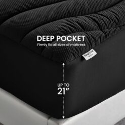 - DEEP POCKET EASY CARE – Quilted Stretch-to-Fit (8″-21″): knitted skirt pocket stretches up to 21 inches deep and can be easily placed on most mattresses. The 1.6-inch width of high-quality sport elastic trim securely holds your wrap in place, and its excellent elasticity makes the wrap easy to fit and remove. It ensures you get the most restful and restorative sleep. Machine wash cold, do not use bleach, tumble dry low.