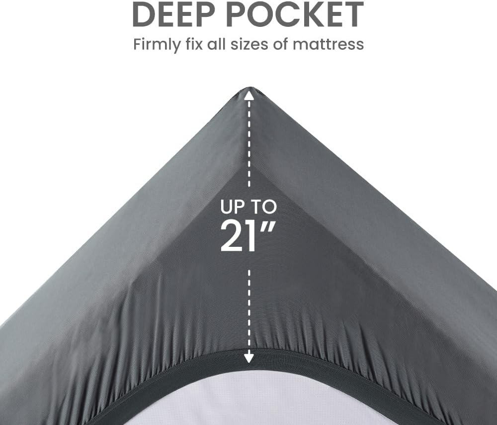 - DEEP POCKET EASY CARE – Quilted Stretch-to-Fit (8″-21″): knitted skirt pocket stretches up to 21 inches deep and can be easily placed on most mattresses. The 1.6-inch width of high-quality sport elastic trim securely holds your wrap in place, and its excellent elasticity makes the wrap easy to fit and remove. It ensures you get the most restful and restorative sleep. Machine wash cold, do not use bleach, tumble dry low.