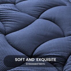 SLEEP ZONE Full Size Cooling Mattress Topper, Premium Zoned Cool Mattress Pad Cover, Padded Mattress Protector Breathable Washable, Deep Pocket 8-21″ (Navy, Full)