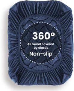 - DEEP POCKET EASY CARE – Quilted Stretch-to-Fit (8″-21″): knitted skirt pocket stretches up to 21 inches deep and can be easily placed on most mattresses. The 1.6-inch width of high-quality sport elastic trim securely holds your wrap in place, and its excellent elasticity makes the wrap easy to fit and remove. It ensures you get the most restful and restorative sleep. Machine wash cold, do not use bleach, tumble dry low.