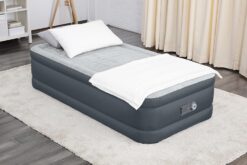 Both durable and comfortable, the Sleeplux Tough Guard Air Mattress with Snugable Top has a surface that is smooth and soft to the touch! This air bed is heavy-duty while still being comfortable and soft, making it the premium choice. Durable Construction: Constructed for lasting durability, this air mattress is made out of Tough Guard material. This fusion of PVC and polyester is not just a more comfortable sleeping surface, but it’s also stronger than traditional PVC, while still being 10% lighter weight. The woven material ensures that the bed doesn’t become too hot or too cold throughout the night, as commonly noticed with PVC beds. Luxurious Plush Surface: Featuring a Snugable Top, this bed is just as cozy as it is durable. This luxurious plush surface is soft to the touch and helps to hold in body heat night long. Specially designed to be the softest sleeping surface, the Snugable Top airbed will provide you and your guests with unparalleled comfort.