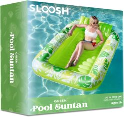 Sloosh Inflatable Tanning Pool Lounger Float for Adults, 70″ x 46″ Large Suntan Tub Pool Floats Sun Tan Tub Ice Bath Tub Tanning Bed Blow up Pool Raft Lounge Floatie, L-Green