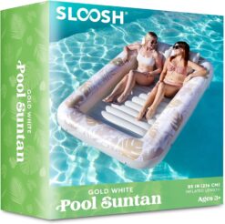 Sloosh Inflatable Tanning Pool Lounger Float for Adults, 85″ x 57″ Extra Large Suntan Tub Pool Floats Sun Tan Tub Ice Bath Tub Tanning Bed Blow up Pool Raft Lounge Floatie, XL-Oatmeal White