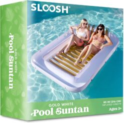 Sloosh XL Inflatable Tanning Pool Lounge Float, 85″ x 57″ Extra Large Sun Tan Tub Adult Pool Floats Raft for Pool Sunbathing Suntan Blow up Pool Lounger Tanning Bed Floatie for Adults, XL-Golden White
