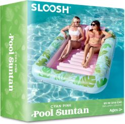 Sloosh XL Inflatable Tanning Pool Lounger Float for Adults, 85″ x 57″ Extra Large Suntan Tub Pool Floats Sun Tan Tub Ice Bath Tub Tanning Bed Blow up Pool Raft Lounge Floatie, XL-Cyan Pink