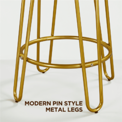 Want to change the vibe of your room? This set of counter stools is made of luxurious velvet/boucle upholstery seats and golden metal legs, bringing a beautiful glam charm, at the same time, won’t compromise a comfortable sitting experience. The rounded seats are well padded with thick elastic foam, providing you with strong body support and a firm feeling. Compared with hard bar stools, our upholstered kitchen stools are built for utmost comfort. The seats are well stuffed with 3.15in thick elastic foam for a firm feeling, which helps to relieve muscle fatigue and won’t make you feel tired after hours of sitting. More, the breathable velvet finish gives you a smooth sense of touch. Featuring sturdy metal legs and a circular footrest, this kitchen stool could let you sit stably and securely. With the unique color scheme and stylish appearance, this pair of bar stools is ideal for the kitchen, home bar, dining room, restaurant and more.