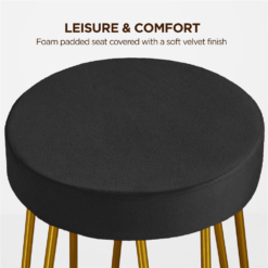 SMILE MART 26.5″H Upholstered Velvet Counter Stools with Golden Metal Legs Set of 2, Black