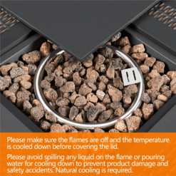 - 8. Please make sure the flames are off and the temperature is cooled down before covering the lid.