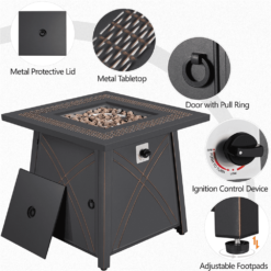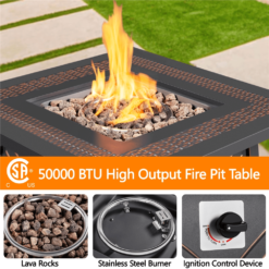 SMILE MART 28″ Square Propane Fire Pit Table with Lid and Iron Tabletop for Outdoor, Copper