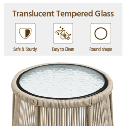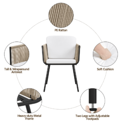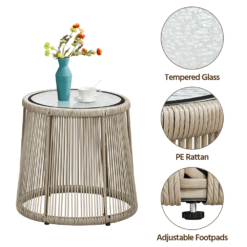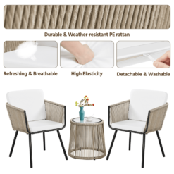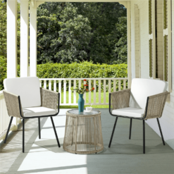 Looking for pieces of wicker furniture for your yard? Our 3-piece wicker bistro set will not let you down as stylishness and durability meet in harmony with this outdoor conversation set. Constructed with powder-coated iron and hand-woven PE rattan, this 3-piece bistro set is sturdy and not easy to deform. With this g conversation set, you can create a private space in your patio, garden, poolside, yard, lawn, and other outdoor or indoor spaces. Moreover, with all the required accessories and instructions, it won’t take you much time to set up. Best of all, the selected material makes this wicker table set cleaning a breeze for hassle-free maintenance. With 2 rattan armchairs and a circle-tempered glass table, you can sit together and chat freely with your family and friends. This patio chat set will be an elegant and utility decor in your home.