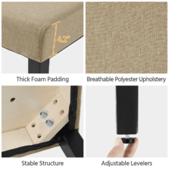 SMILE MART 4pcs Fabric Upholstered Parson Dining Chairs for Home, Khaki