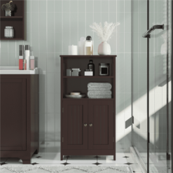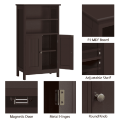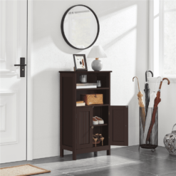 Any home needs a versatile storage cabinet! That’s why we recommend this simple style free-standing cupboard to you. This cabinet is made of durable MDF boards and the good quality ensures it will last for a long time. The storage shelves feature a tabletop, two open shelves and 2-layer storage behind the doors. As a floor cabinet, it can go from one room to another to meet your variable house organization needs. Clean lines combined with a simple design add a touch of elegance to your space. Ideal for use in the bathroom, living room, kitchen, entryway, and any place that needs storage.