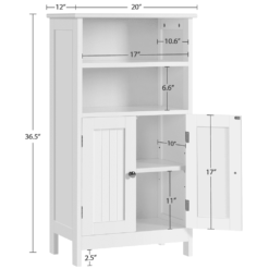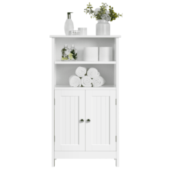 Any home needs a versatile storage cabinet! That’s why we recommend this simple style free-standing cupboard to you. This cabinet is made of durable MDF boards and the good quality ensures it will last for a long time. The storage shelves feature a tabletop, two open shelves and 2-layer storage behind the doors. As a floor cabinet, it can go from one room to another to meet your variable house organization needs. Clean lines combined with a simple design add a touch of elegance to your space. Ideal for use in the bathroom, living room, kitchen, entryway, and any place that needs storage.