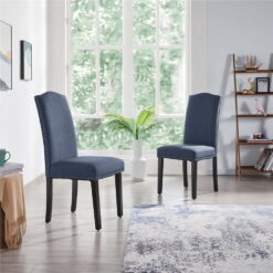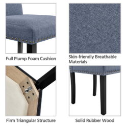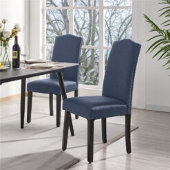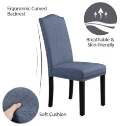 SMILE MART Fabric Upholstered Dining Chair HighBack, Set of 2, Blue