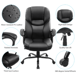 - Smile Mart Faux Leather Swivel Office Chair with Ergonomic High Back for Home Office, Black