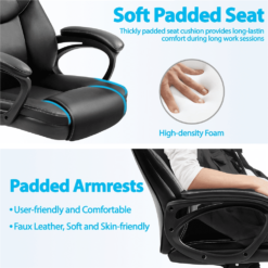 Looking for a new office chair for your home office or game room? A cozy and elegant faux leather computer desk chair can be a nice choice. PU leather-covered chair is both easy to clean and long-wearing. A strong metal base makes sure our customers enjoy comforts and relaxing sitting. The seat height is adjustable according to individual needs. The foam-padded seat and high, curved back provide optimal body support and relieve muscle tension caused by long hours of working, meeting, or studying. It has a rocking feature as well. Mute castors allow 360° smooth mobility without scratching the floor. A versatile addition to study rooms, offices, home offices, reception areas and libraries.
