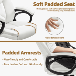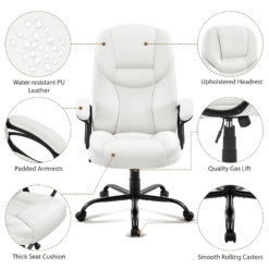 - Smile Mart Faux Leather Swivel Office Chair with Ergonomic High Back for Home Office, White