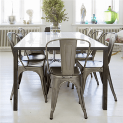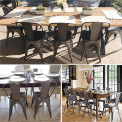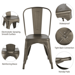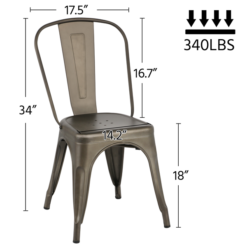 The SmileMart Industrial Modern Metal Dining Chairs come in a set of four allowing you conveniently decorate your space while providing you with good value. These indoor/outdoor dining chairs are applicable for bistros, patios, cafes, restaurants and dining rooms. The rubber feet keep the chairs from sliding and scratching hardwood floors. There are several holes on the surface of each chair which are designed to release pressure and provide ventilation when sitting in them. They are industrial and modern allowing them to match many various interior design styles. The chairs are made of iron metal and the max load bearing is 340 pounds. The high-quality material is solid enough for everyday needs and durable enough for long-term use. Because of the glossy surface is polished in water-resistant and rust-resistant material, these chairs will withstand weather changes. Instructions and accessories are included.