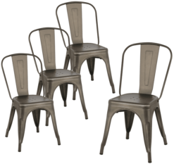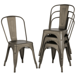 SMILE MART Industrial Modern Metal Dining Chairs, Set of 4, Gunmetal Gray