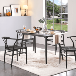 SMILE MART Mid-Century Metal Weave Dining Chair with Y-Shaped Backrest, 2PCS, Full Black