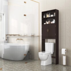 SMILE MART Over Toilet Storage Cabinet 2 Shelves for Bathroom, Espresso, 25’’L*8’’W*77’’H