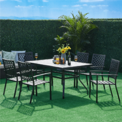 On this outdoor dining table, you can enjoy the beauty of nature while having dinner with your family, reading a book, or having a cup of coffee. The black overall metal construction ensures years of performance and durability. Weather and oxidation-resistant features ensure that the table can be used even on summer or rainy days, and you can add a brightly colored umbrella for outdoor dining that will create an area to enjoy. This black dining bistro table is designed with reinforced metal construction with a powder-coated surface, making this patio table strong and sturdy enough for outdoor and indoor use.